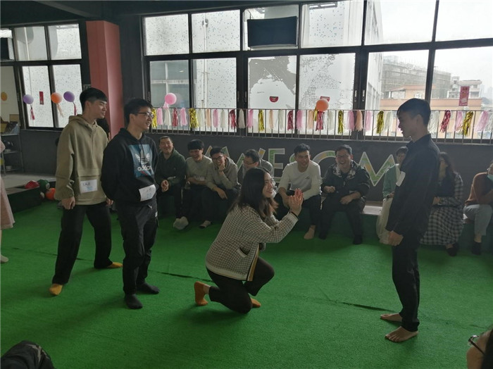 活動精心設(shè)計(jì)了自我介紹、互動游戲等豐富多彩的活動環(huán)節(jié),調(diào)動起62名青年男女們的熱情參與,在活動開始前主持人介紹了到場嘉賓、活動流程、進(jìn)行隨機(jī)分組,組成的4個隊(duì),每名隊(duì)員依次進(jìn)行自我介紹相互認(rèn)識,推選隊(duì)長,并設(shè)計(jì)出屬于自己的隊(duì)名“乘風(fēng)破浪”、“最襯打工人”、“黑色向日葵”、“龍馬精神”,4個小隊(duì)經(jīng)過接力拼圖、T恤氹氹轉(zhuǎn)、你演我猜、射擊保齡球等符合青年人的游戲,全場氣氛一度進(jìn)入新的高潮,給青年男女們更多接觸和交流的機(jī)會,也充分展現(xiàn)青年們健康向上、富有活力的良好風(fēng)貌,“最襯打工人”隊(duì)依靠大家默契的配合取得勝利。中午以自助餐的形式大家圍坐在一起,輕松愉悅的用餐氛圍,使男女青年們很快熟絡(luò)起來,并增進(jìn)了友誼。