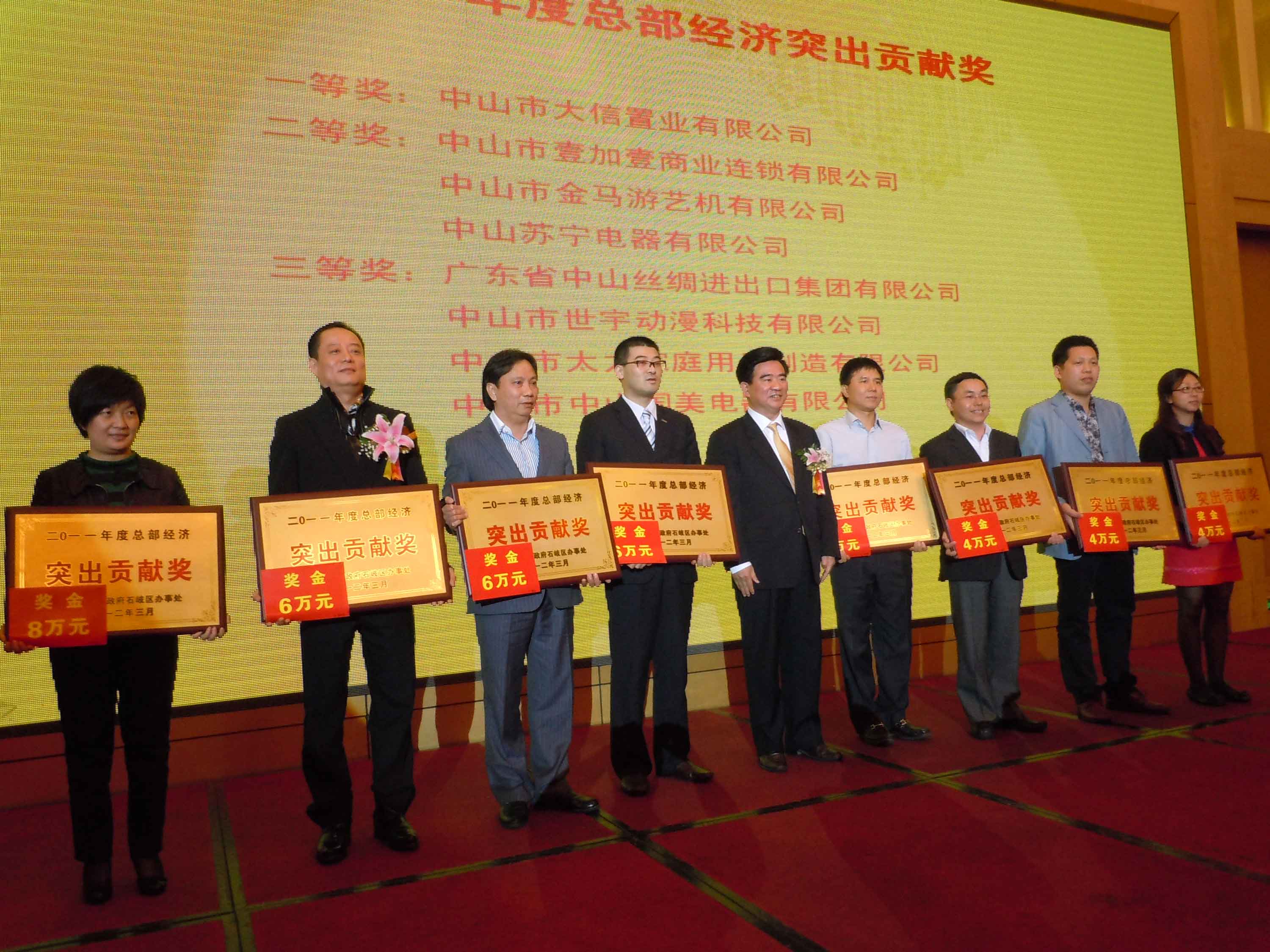 晚會(huì)上,石岐區(qū)辦事處為全區(qū)經(jīng)濟(jì)發(fā)展作出突出貢獻(xiàn)的42家企業(yè)及協(xié)會(huì)共計(jì)54個(gè)項(xiàng)目進(jìn)行了通報(bào)表彰。在過(guò)去一年里,我司著力推進(jìn)產(chǎn)業(yè)轉(zhuǎn)型升級(jí),向高科技4D動(dòng)漫影視娛樂(lè)項(xiàng)目延伸,以科技創(chuàng)新帶動(dòng)發(fā)展,為區(qū)內(nèi)經(jīng)濟(jì)騰飛作出了突出貢獻(xiàn),受到了區(qū)辦事處的肯定與嘉許,榮獲“二〇一一年度總部經(jīng)濟(jì)突出貢獻(xiàn)獎(jiǎng)”、“二〇一一年度企業(yè)自主創(chuàng)新及科學(xué)技術(shù)獎(jiǎng)”、“二〇一一年度企業(yè)黨建促發(fā)展先進(jìn)獎(jiǎng)”等三大獎(jiǎng)項(xiàng),共獲得了石岐區(qū)10萬(wàn)元的獎(jiǎng)金獎(jiǎng)勵(lì)。鄧志毅董事長(zhǎng)、曾慶遠(yuǎn)副總經(jīng)理及楊焯彬書(shū)記分別代表公司上臺(tái)領(lǐng)獎(jiǎng)。