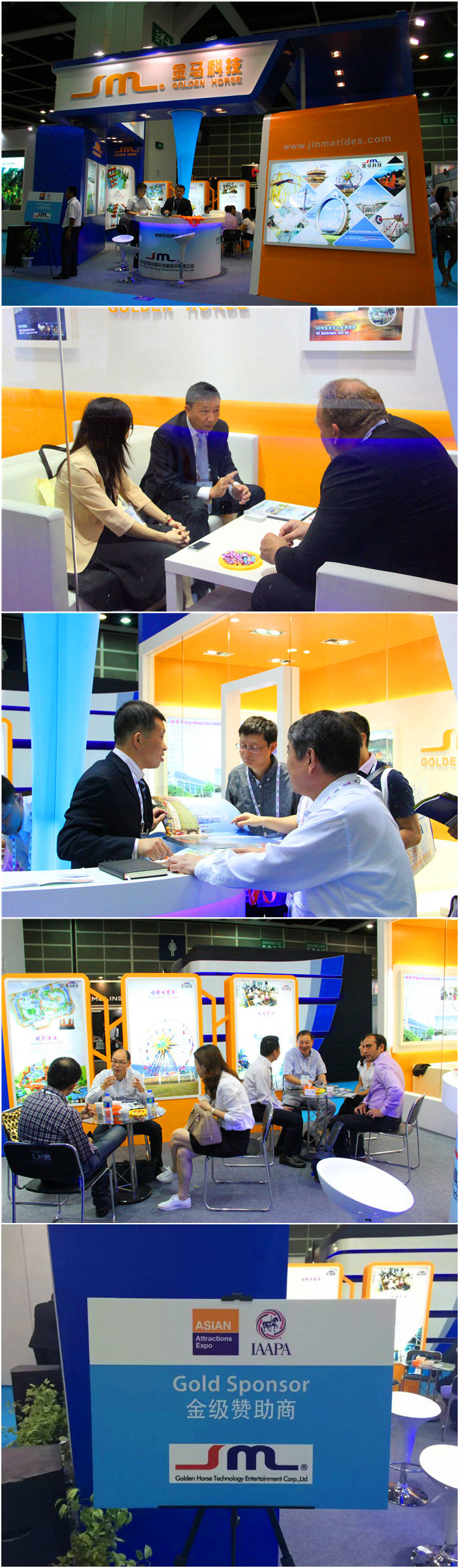作為本屆亞洲展的金級(jí)贊助商,公司專注游樂(lè)創(chuàng)新、著力引領(lǐng)行業(yè)發(fā)展,特裝展位由公司外觀設(shè)計(jì)團(tuán)隊(duì)自主創(chuàng)作,成為亞洲展的一道亮麗的風(fēng)景線。在為期三天的展會(huì)中,金馬吸引了超過(guò)百位客商到場(chǎng)參觀、咨詢,展位中人流絡(luò)繹不絕,創(chuàng)意十足的產(chǎn)品、熱情周到的服務(wù)給客商留下了深刻的印象。