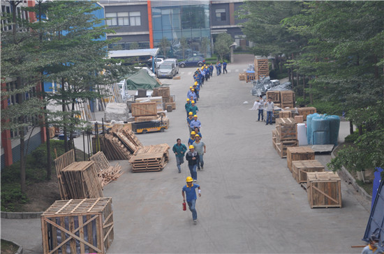 演習開始前,執(zhí)行指揮強調(diào)并要求參加演習員工須按公司消防預案,明確分工,高效且有序地實施疏散、滅火、救援等工作。隨著警報聲的發(fā)出,演習正式開始。所有參演人員在執(zhí)行指揮的任務分配下,迅速到底指定位置,相互配合,完成任務。救火組率先切斷電源,接水槍滅火;疏散組各組員按指定疏散線路組織人員有序疏散,防止踩踏事故;搶救組開辟防火隔離帶,救護傷員;通訊組模擬說明事故地址、接警車......在執(zhí)行指揮的指揮與引導下,整個演練過程既緊張、激烈,又有條不紊。