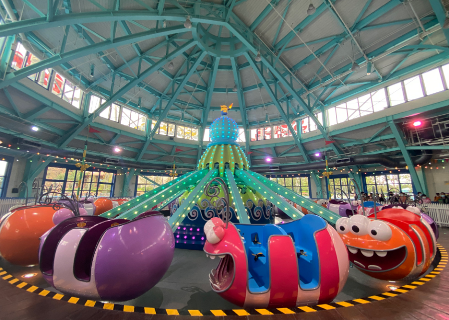超萌漩漩渦則是國內(nèi)首個64座大型自控飛機類項目,也是全世界最大、乘坐人數(shù)最多的自控飛機類項目之一。作為孩童最熱愛小黃人區(qū)域,設(shè)備的外觀打造上工程師們頗費心思,為了還原動漫角色Q萌活潑的形象,模具的制作上采取了3D打印技術(shù),使造型更逼真立體。同時,我們安全束縛裝置進行了超過50萬次的反復(fù)測試,令設(shè)備使用更安全可靠。
