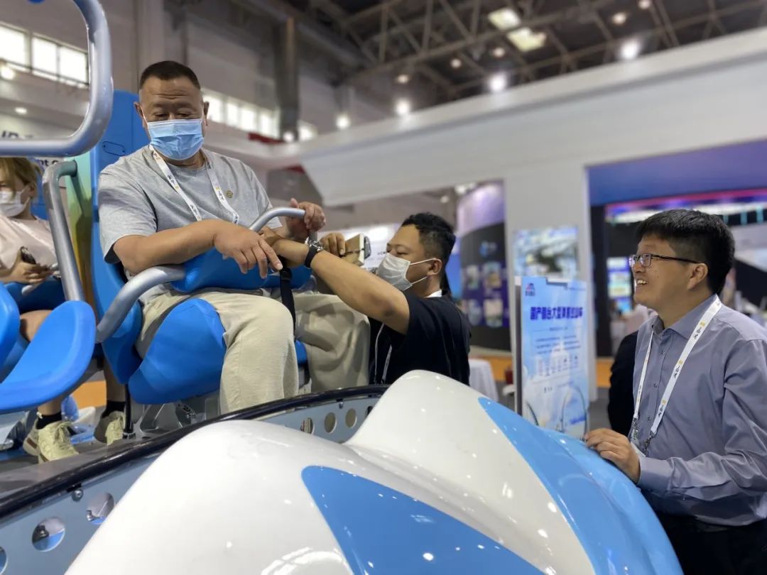 金馬文旅科技在本次展會上集中展示了飛行影院、黑暗乘騎、4D影院等多個虛擬沉浸式系列產品的落成案例,96座翻轉式飛行影院《飛躍泰山》、6自由度動感黑暗乘騎《盤古開天》呈現出的震撼效果體現了金馬文旅科技在沉浸式項目創(chuàng)意設計、內容策劃及總體集成能力的跨越式進步,近兩年打造的一個又一個虛擬沉浸式高科技文旅示范標桿項目,有效引領了行業(yè)創(chuàng)新,助力數字沉浸式產品高質量發(fā)展,得到前來觀展、交流的行業(yè)領導、專家認可與贊賞,客商合作意向不斷。