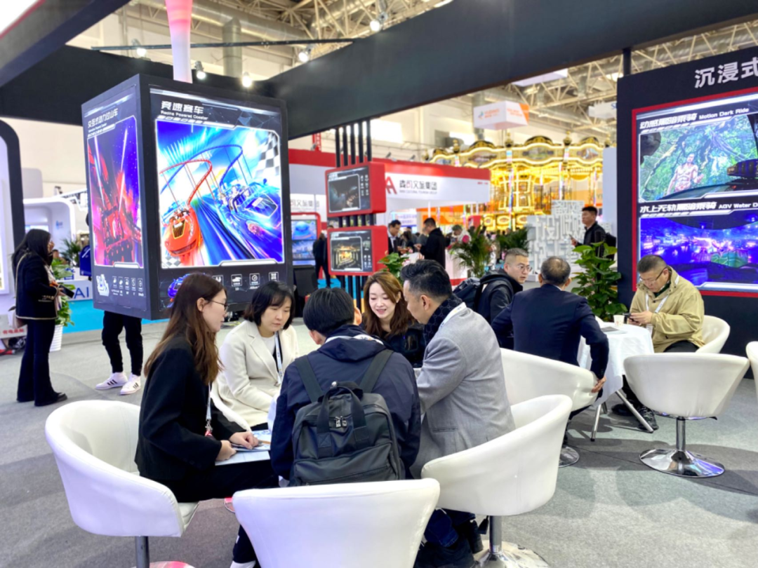 展會(huì)期間還同期舉辦了2024中國(guó)旅游休閑娛樂產(chǎn)業(yè)年會(huì)-2024中國(guó)沉浸娛樂與文旅數(shù)字科技創(chuàng)新發(fā)展論壇,公司副總經(jīng)理林澤釗作為受邀嘉賓出席并參與了“沉浸產(chǎn)業(yè)服務(wù)供應(yīng)鏈體系融合”主題圓桌討論,與業(yè)內(nèi)同仁就“技術(shù)創(chuàng)新是如何制造體驗(yàn)賣點(diǎn)和驅(qū)動(dòng)消費(fèi)”、“面對(duì)2024年行業(yè)商業(yè)變量的應(yīng)對(duì)策略”等熱點(diǎn)話題展開探討。林澤釗副總經(jīng)理表示:在虛擬沉浸式項(xiàng)目中,創(chuàng)意概念的落地能力尤為關(guān)鍵,打造高沉浸感體驗(yàn)極其考驗(yàn)多維一體的技術(shù)集成能力,得益于金馬游樂多年技術(shù)投入,近年多個(gè)國(guó)內(nèi)首創(chuàng)虛擬沉浸項(xiàng)目順利落地,沉浸效果備受肯定與青睞;面對(duì)如今市場(chǎng)多元化、輕體量、快交付的需求特點(diǎn),金馬游樂正通過(guò)技術(shù)平臺(tái)整合來(lái)加快創(chuàng)新技術(shù)成果轉(zhuǎn)化,源源不斷為市場(chǎng)供給新產(chǎn)品,引領(lǐng)行業(yè)向新而行。