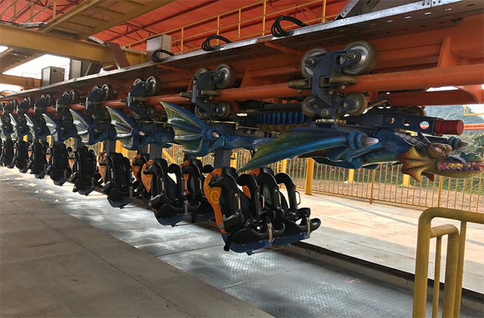 懸掛過(guò)山車(chē)的列車(chē)座椅懸掛于軌道下方,乘客懸空而坐,增加體驗(yàn)刺激度。列車(chē)經(jīng)由動(dòng)力提升到軌道最高端后,轉(zhuǎn)為沿軌道自由高速滑行,乘客坐于座椅上時(shí)盡情地享受失重、倒轉(zhuǎn)和離心的強(qiáng)烈感覺(jué)。列車(chē)外觀(guān)可根據(jù)樂(lè)園特色定制,幫助樂(lè)園打造專(zhuān)屬特色。