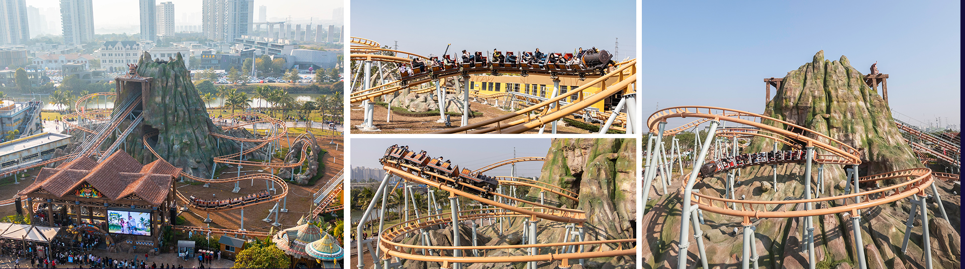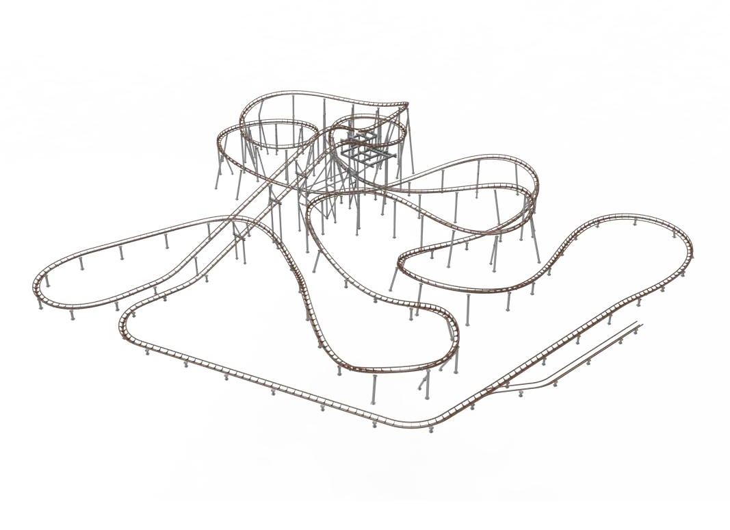 礦山車模仿古代礦山列車運行模式,采用仿古式的火車造型,游客仿佛置身于礦山現(xiàn)場。全程路軌設(shè)有兩個提升段,配合先進(jìn)變軌技術(shù)、減震膠與柔和的永磁制動,為乘客乘坐帶來舒適靜謐的體驗。同時獨特的壓腹式壓杠結(jié)構(gòu),確保包括?度1.1m以上兒童可被有效束縛,增大游客受眾范圍。