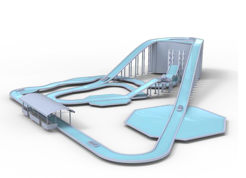 垂直提升激流勇進(jìn)設(shè)備提升高度20米,具備垂直提升、跌落、背沖的特點(diǎn)。采用垂直傳動(dòng)系統(tǒng)提升方式提升,減少設(shè)備占地面積。船體到達(dá)旋轉(zhuǎn)臺時(shí)進(jìn)行方向調(diào)整,乘客可在游玩過程中分別體驗(yàn)前向俯沖起伏、背向俯沖起伏兩種運(yùn)動(dòng)形式,同時(shí)可融入影視特效主題內(nèi)容,體驗(yàn)元素多樣,驚險(xiǎn)刺激。
