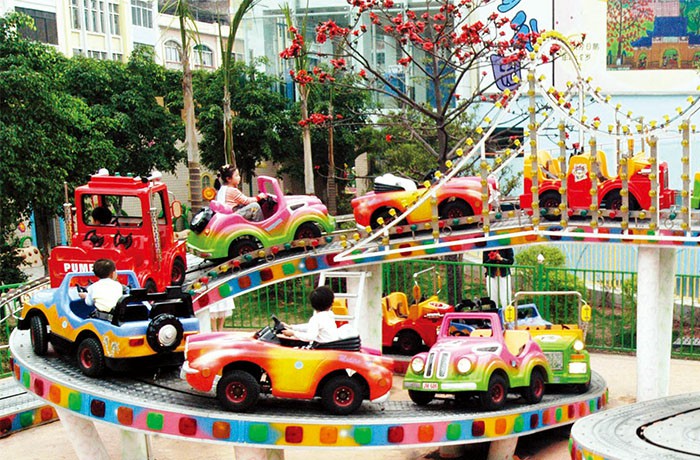 小朋友們開著自己心愛的小車輛翻山越嶺、追逐嬉戲;配有歡快優(yōu)美的音樂,氣氛輕松。小車沿軌道自動轉(zhuǎn)向,盤旋在綿延起伏的立交軌道上,時高時低,你追人趕,令孩子們體會翻山越嶺和飛越時空的感覺,夠刺激而絕無恐慌之感。