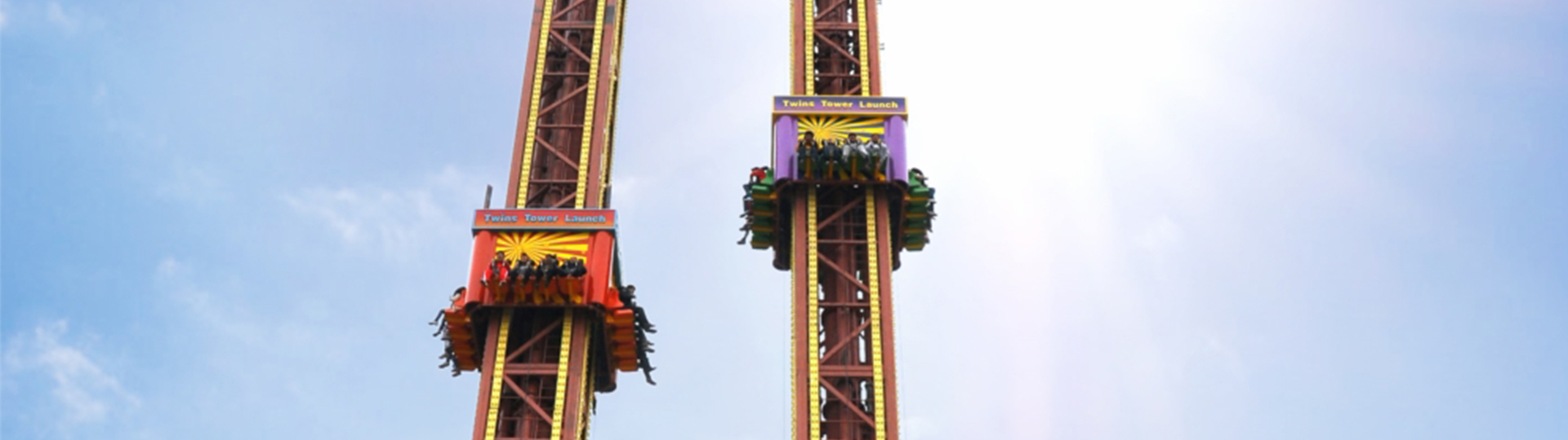 雙塔太空梭以雙塔為造型,設(shè)備整體由發(fā)射塔和速降塔組成。座艙在鋼絲繩的牽引下沿著豎直的立柱軌道作上升、下降運(yùn)動(dòng),使乘客在超重與失重的過(guò)程中體驗(yàn)加速度升降樂(lè)趣。