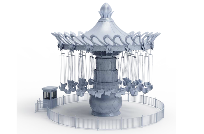 颶風(fēng)飛椅設(shè)備通過傘形轉(zhuǎn)盤的旋轉(zhuǎn)和中間轉(zhuǎn)臺的錯(cuò)位旋轉(zhuǎn),實(shí)現(xiàn)飛椅的波浪式運(yùn)動,乘客猶如在空中自由飛翔飄蕩。