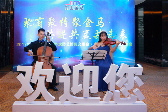 金色八月,熱情似火,有朋自遠(yuǎn)方來(lái),逢盛事喜相聚。為了對(duì)即將召開(kāi)的第十屆中國(guó)(中山)國(guó)際游戲游藝博覽交易會(huì)表示熱烈的祝賀,以及對(duì)多年來(lái)一直關(guān)心、支持金馬健康發(fā)展的合作伙伴和嘉賓表示誠(chéng)摯的歡迎和衷心的感謝,8月10日晚,乘著行業(yè)盛會(huì)的東風(fēng),公司在中山喜來(lái)登酒店舉行了盛大的客戶招待晚宴。國(guó)內(nèi)外新來(lái)客商、嘉賓、媒體記者200余人應(yīng)邀出席,與公司管理層及員工代表們共同感受了一場(chǎng)精彩紛呈的盛宴,度過(guò)了一個(gè)充滿歡樂(lè)與活力的難忘之夜。